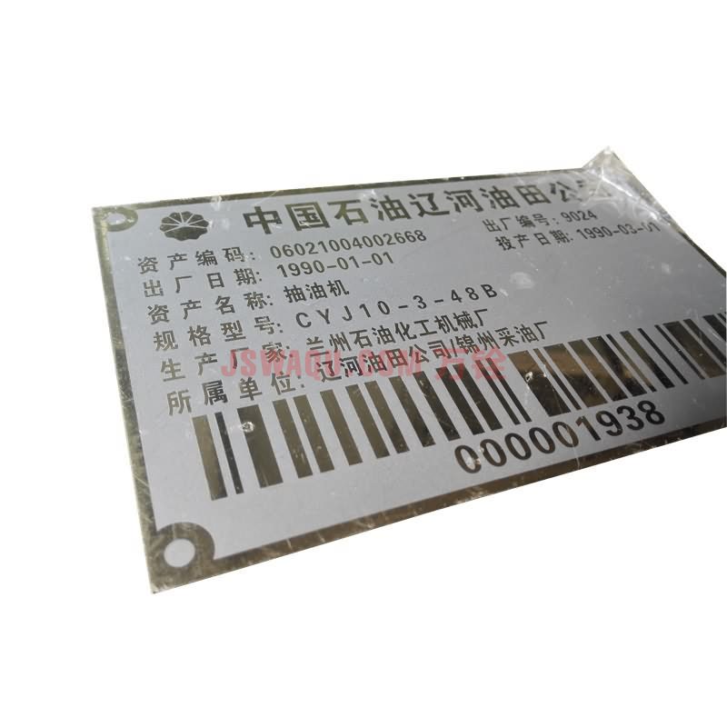 銘牌又稱標(biāo)牌,固定在產(chǎn)品上向用戶提供廠家商標(biāo)識別、品牌區(qū)分,產(chǎn)品參數(shù)銘記等信息。通過沖壓、壓鑄、蝕刻、印刷、琺瑯、仿琺瑯、烤漆、滴塑、電鍍等工藝制作而成。